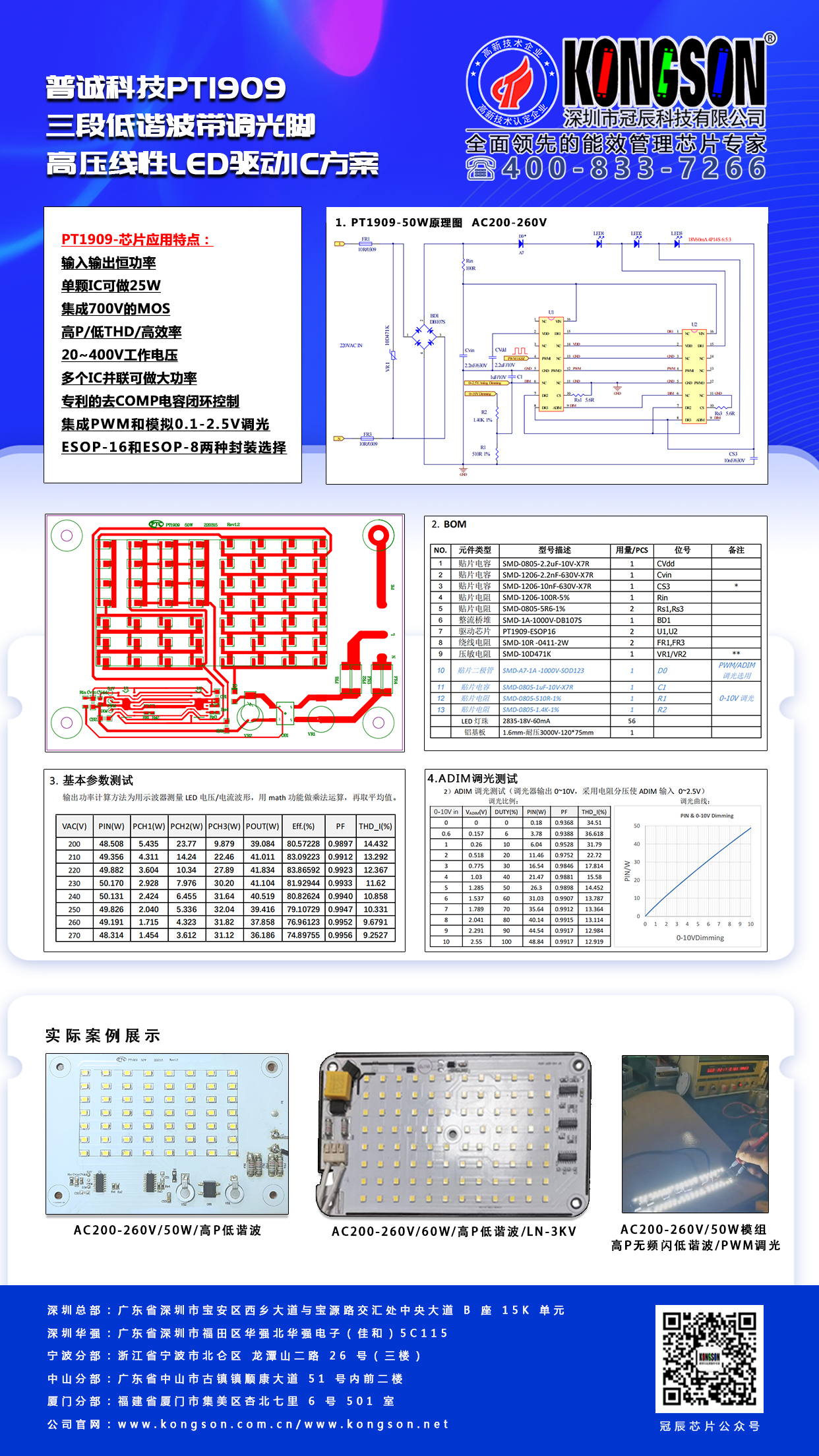- 深圳市冠辰科技有限公司代理產(chǎn)品線(xiàn)之臺(tái)灣普誠(chéng)-PT1909三段低諧波帶調(diào)光腳,高壓線(xiàn)性L(fǎng)ED驅(qū)動(dòng)IC方案